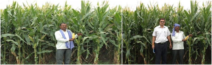 Impact of Technology : Maize is a stable food crop and 70% of the Maize production is done by the small land holders in the district thus small land holders were identified as first line beneficiaries. KVK organized training programmes on production technology of hybrid Maize for farmers and farm women and supplied 8kg of seed to 10 farmers of the village Achharamau, Block-Sursa, District-Hardoi. The scientist of the KVK visited demonstration of plots regularly and provided suitable technological advisory services for specific problems. The crop mature within 105 days with an average productivity of 87.50 q/ha. The superior performance of Maize hybrid varieties spurred gained popularity among the farmers with land holding less than 2.0 ha. Sri Ramesh Chandra Village- Achharamau, Block-Sursa earned bumper yield of hybrid maize variety DKC 9108, with productivity of 91.50 q/ha and net income of Rs. 63,700/-/ha. Sri Ramesh Chandra formed SHG for scaling up production and marketing of spring maize. Due to innovative efforts of Sri Ramesh Chand his native village Achharamau became famous for spring maize cultivation in district Hardoi. The crop rotation maize-potato changed as maize-potato-summer maize. The cropping intensity increased by 100%. The farmers cultivating spring maize in village Achharamau and other adjoining village are receiving a net return Rs. 63,700/-/ha. The technology spread in an area of more than 500 ha with in three seasons due to higher returns. Mr. Ramesh Chand Mishra is a role model for farmers and farm woman for summer maize cultivation. Thus KVK Hardoi could make excellent impact by introducing the hybrid maize cultivation and improving the livelihood status of small land holders.
